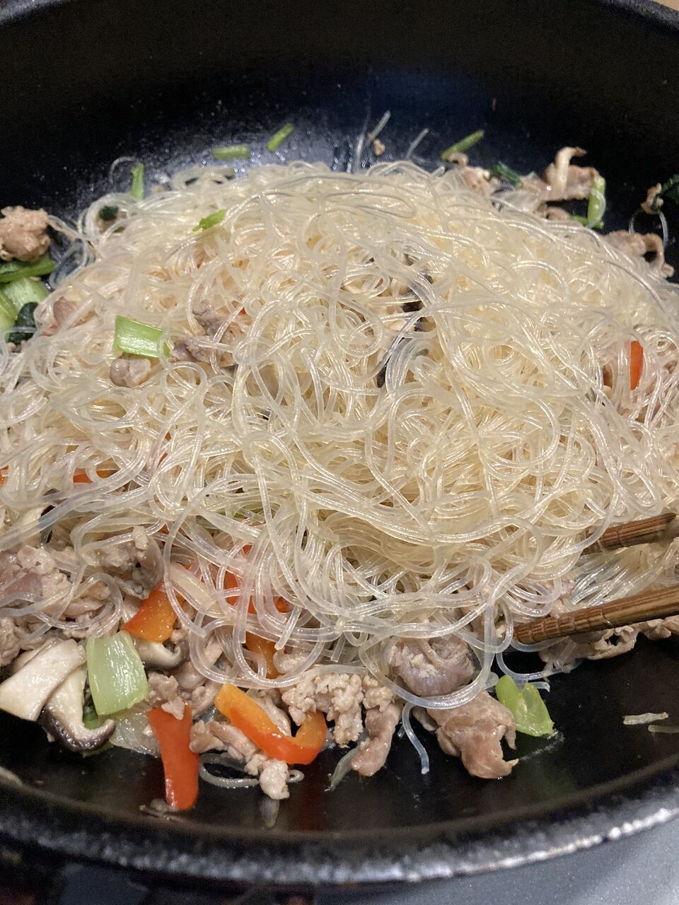 @to__kki最近みてる韓国ドラマで、嫁と姑がチャプチェで大喧嘩してるのを見て、食べたくなって作ったwwwwww