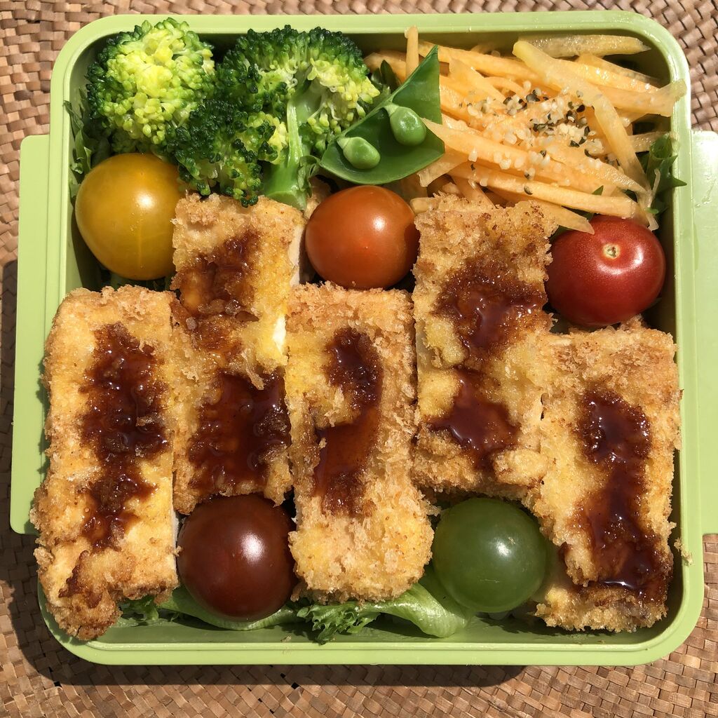 @lakka_fuwarlin夫への植物だけのお弁当🍱🌿高野豆腐のカツ丼🌿キャロットラペ🌿🥦🍅🫘今日のお弁当は喜ぶと思う揚げ物大好きだから😅#お弁当記録 #お弁当#植物弁当#veganfood