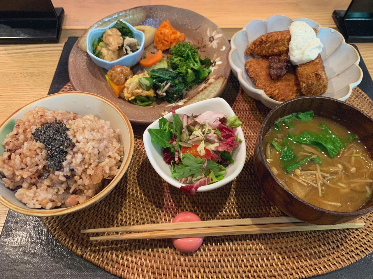 @atoli1523最近は肉食すぎたので、調整で玄米のご飯屋さんに。高野豆腐のカツが美味しかった😍✨